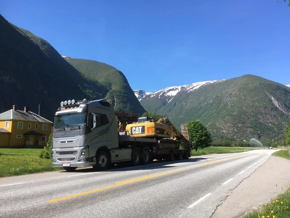 Me tek på oss spesialtransport av blant anna anleggsmaskinar.